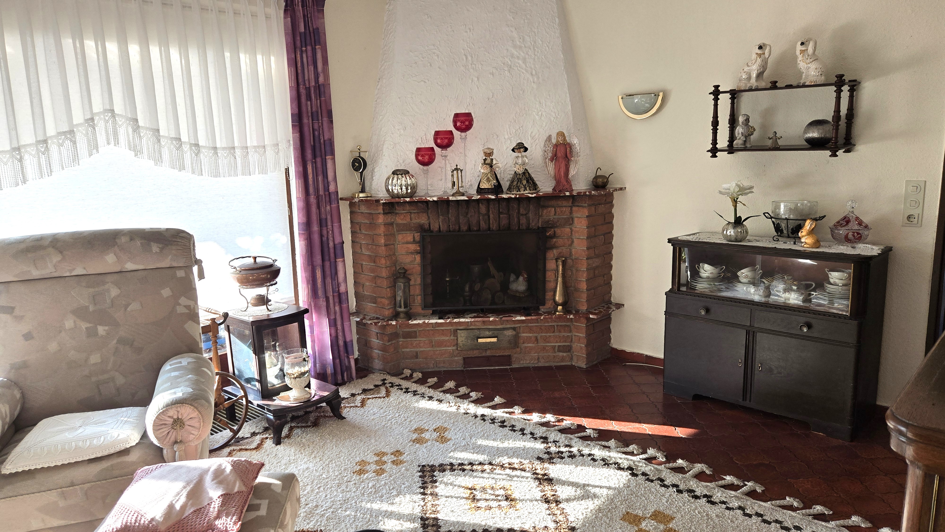 Im Erdgeschoss überzeugt die Immobilie durch eine großzügige und familienfreundliche Raumaufteilung. Ein Elternschlafzimmer sowie zwei weitere Zimmer, die sich flexibel als Kinder-, Gäste- oder Arbeitszimmer nutzen lassen, bieten ausreichend Platz. Das Badezimmer mit Dusche und Badewanne ist funktional und komfortabel gestaltet. Die geräumige Küche mit Abstellraum bietet viel Platz für den Alltag. Mittelpunkt des Hauses ist das große, lichtdurchflutete Wohnzimmer mit Kamin, das eine besonders wohnliche Atmosphäre schafft. Von hier aus gelangen Sie durch eine große Terrassenschiebetür auf die überdachte Terrasse, die zu entspannten Stunden im Freien einlädt und den Wohnraum harmonisch nach draußen erweitert.