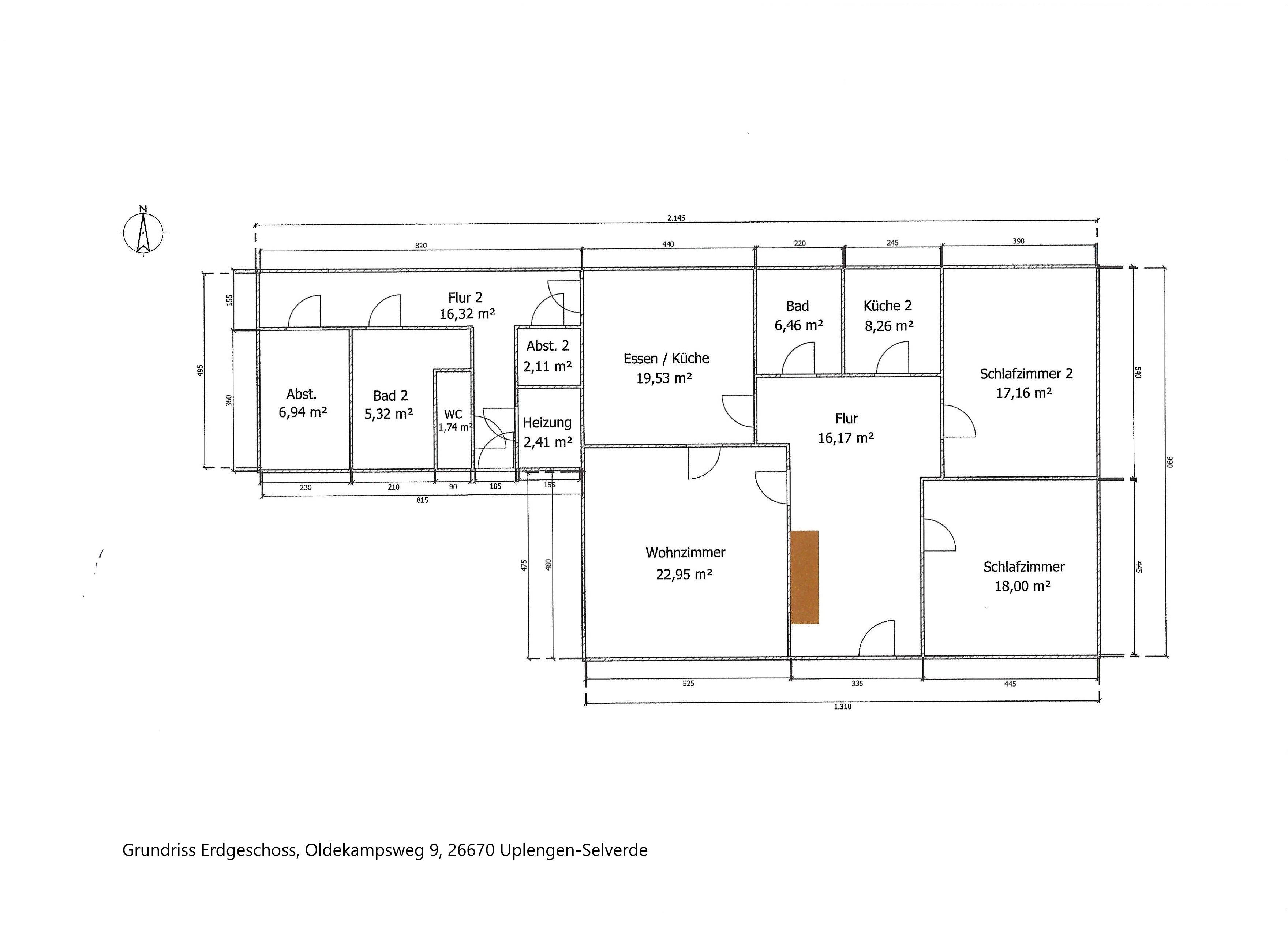 • Zusätzlicher Zwischenbau (nicht in der Wohnflächenangabe berücksichtigt): Gäste-WC, älteres Bad, Hauswirtschaftsraum sowie weitere Nutzflächen.