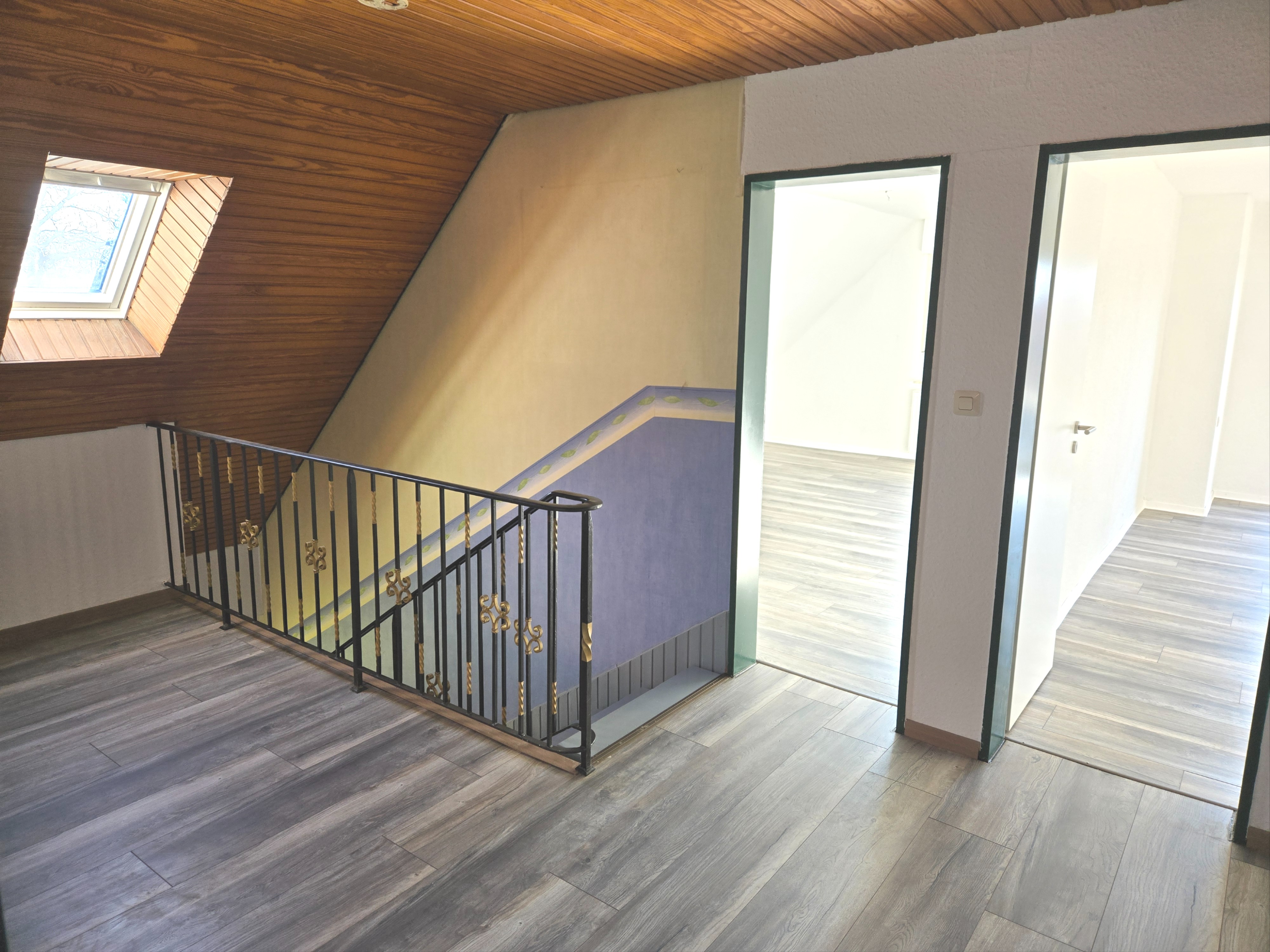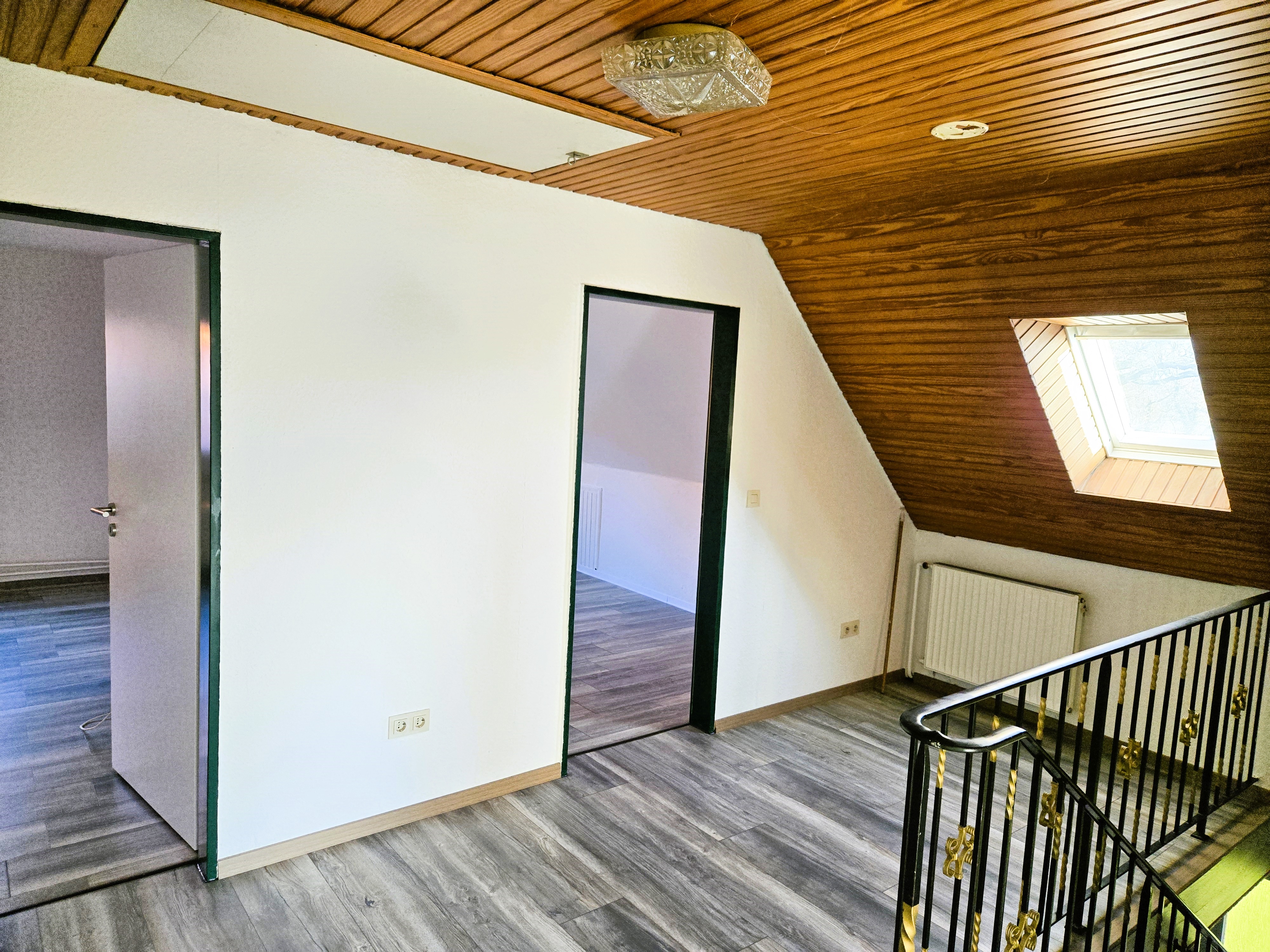• Erdgeschoss: Drei großzügige Zimmer, die als Wohn-, Schlaf- oder Arbeitszimmer genutzt werden können, eine große Küche sowie ein modernisiertes Badezimmer.