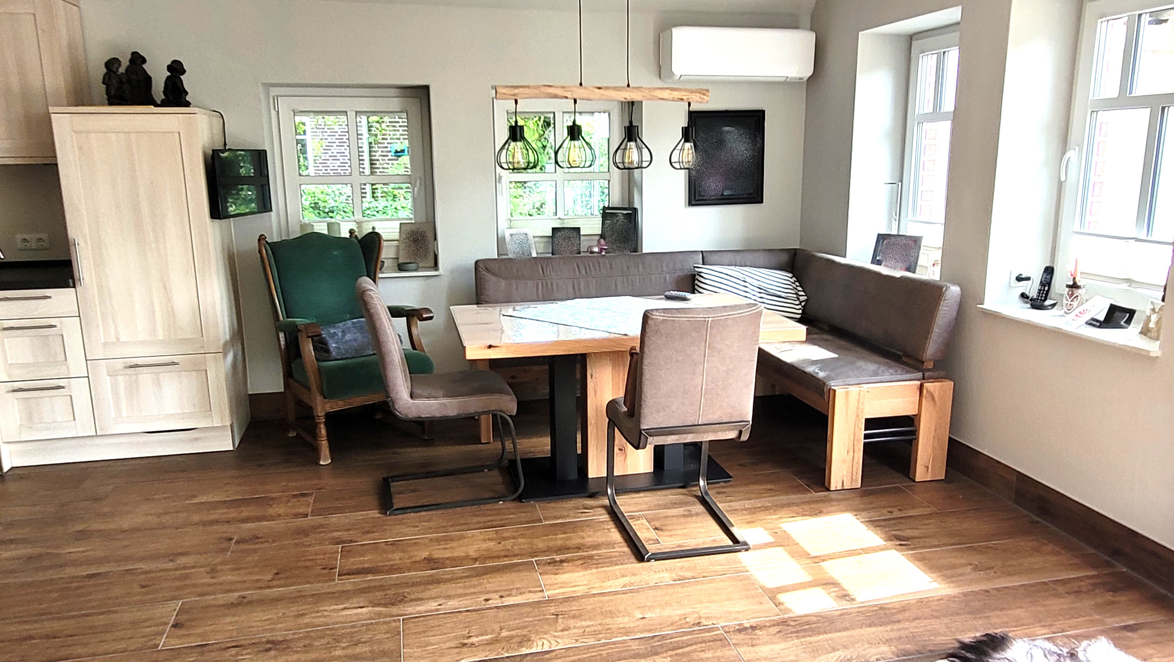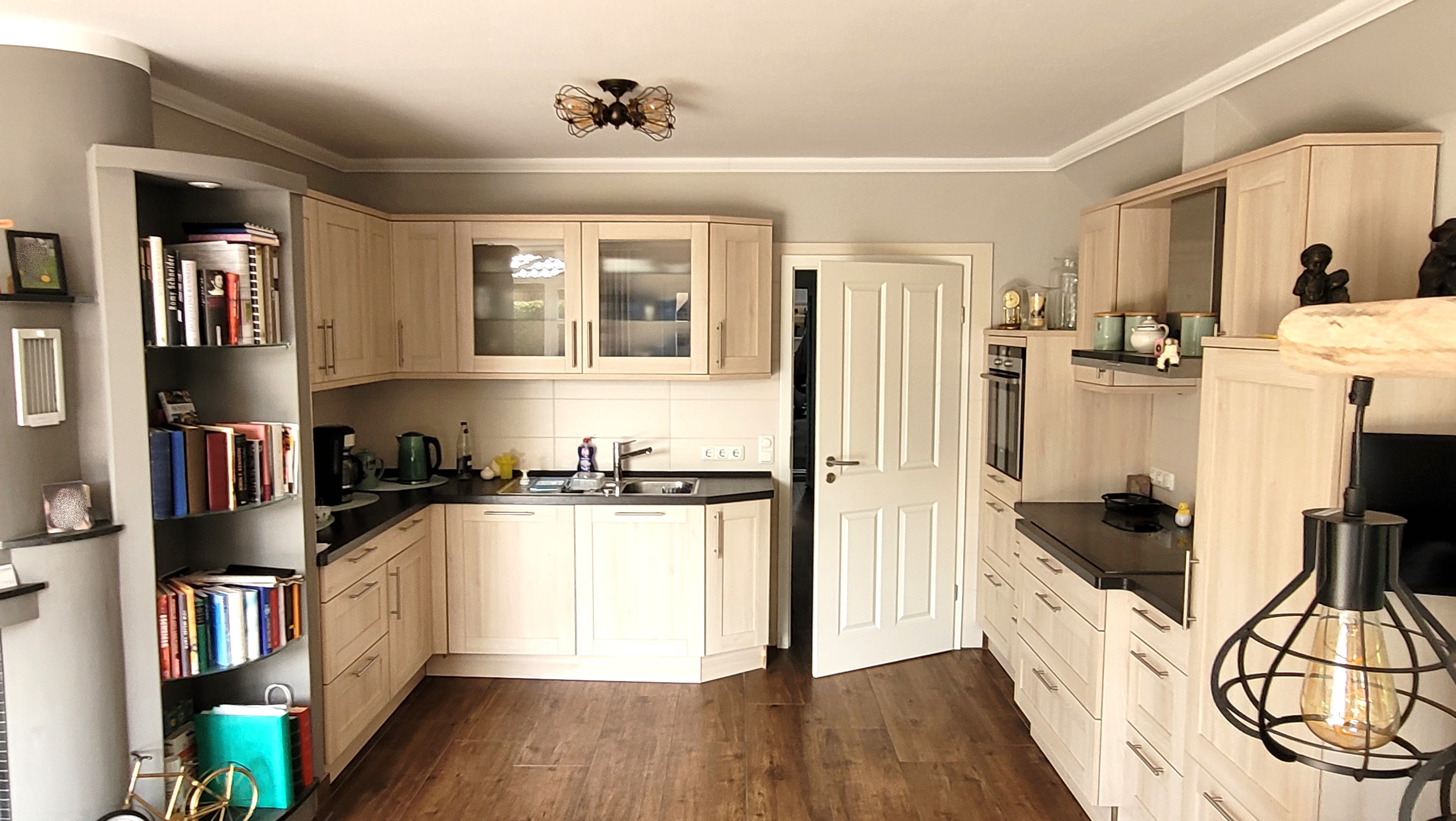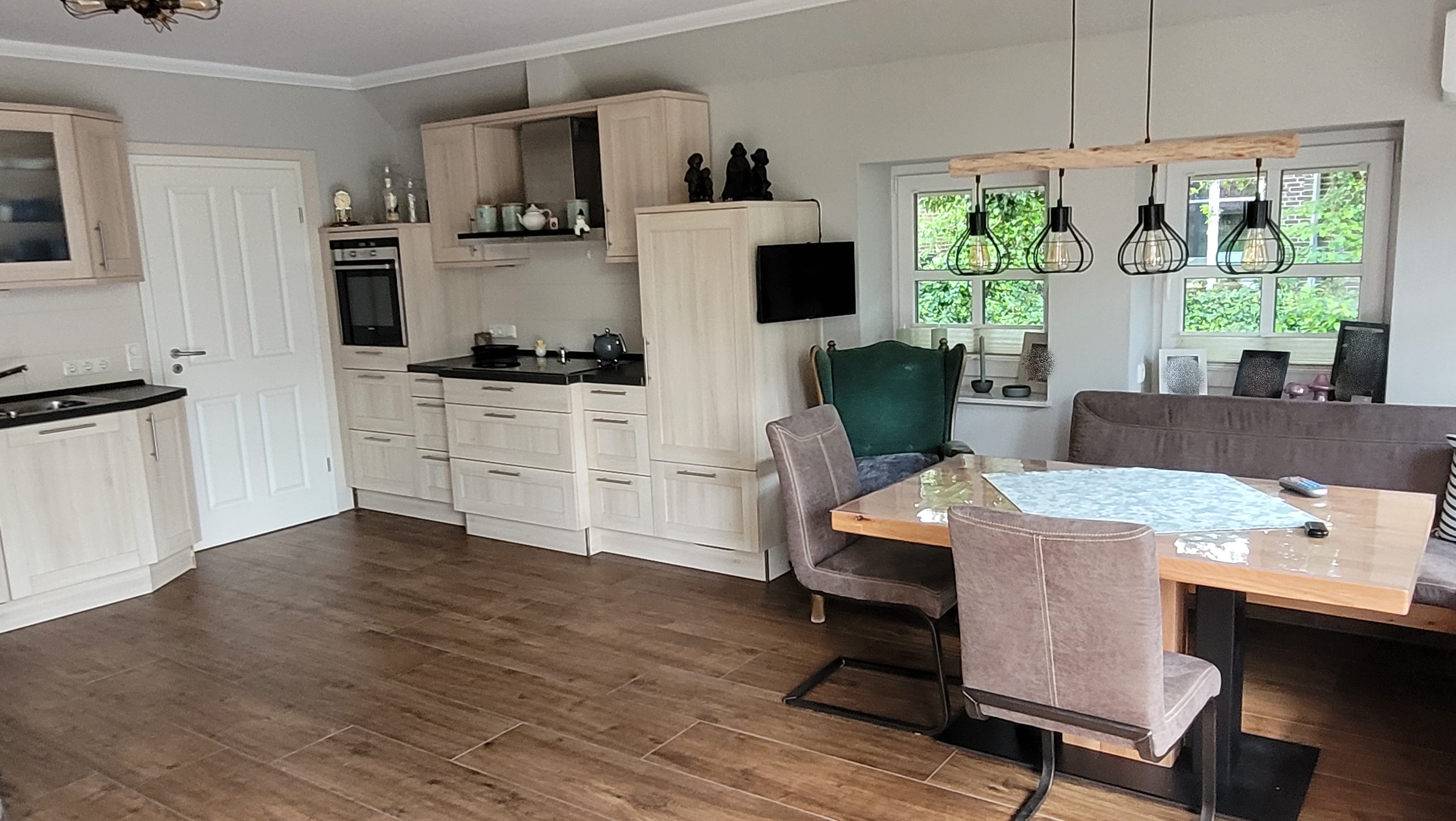 • Offener Wohnbereich: Die Küche und das Wohnzimmer gehen fließend ineinander über und schaffen so eine großzügige und einladende Atmosphäre.