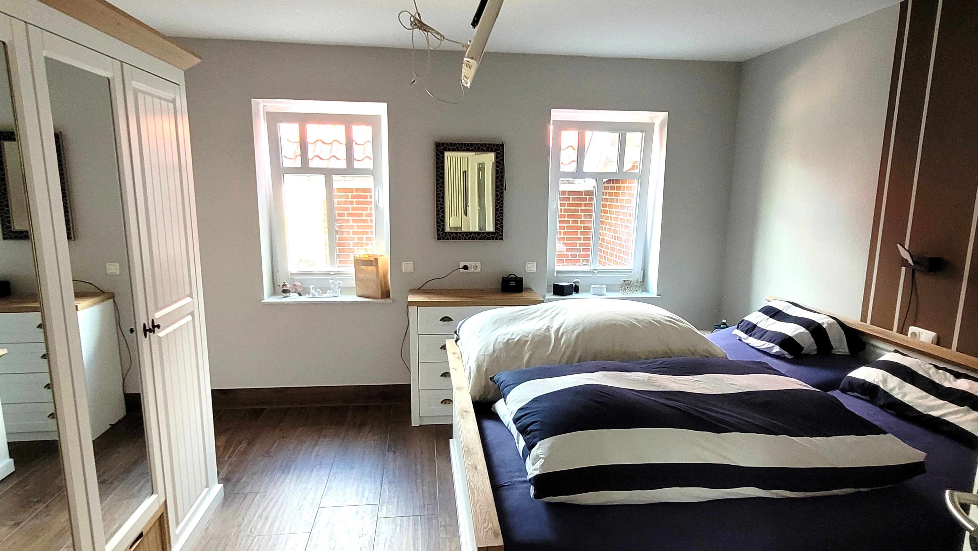 • Zwei große Räume: Im Obergeschoss befinden sich zwei großzügige und helle Zimmer, die vielseitig genutzt werden können – sei es