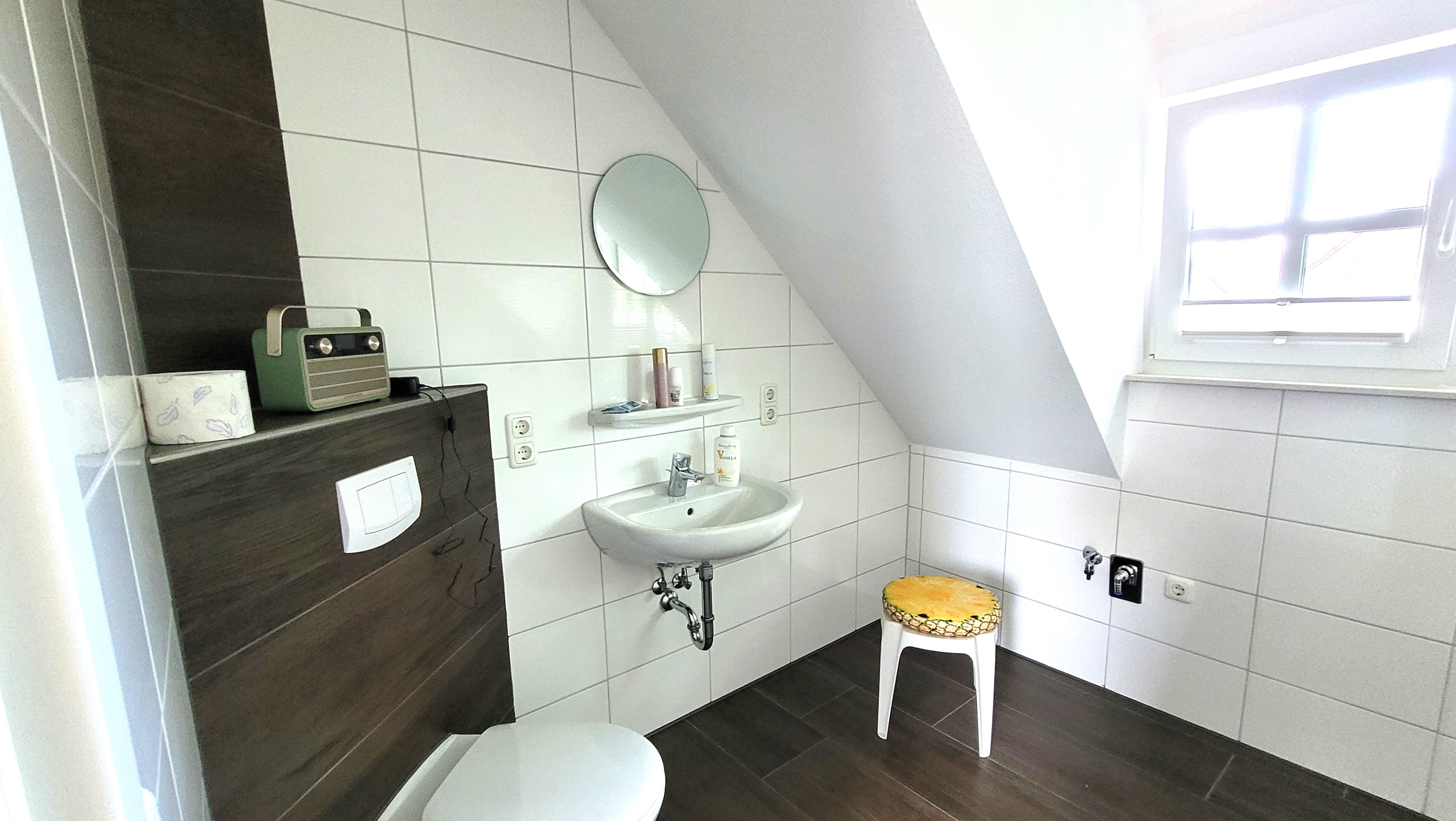 - Ausstattung des Bades Dusche Badewanne Fenster