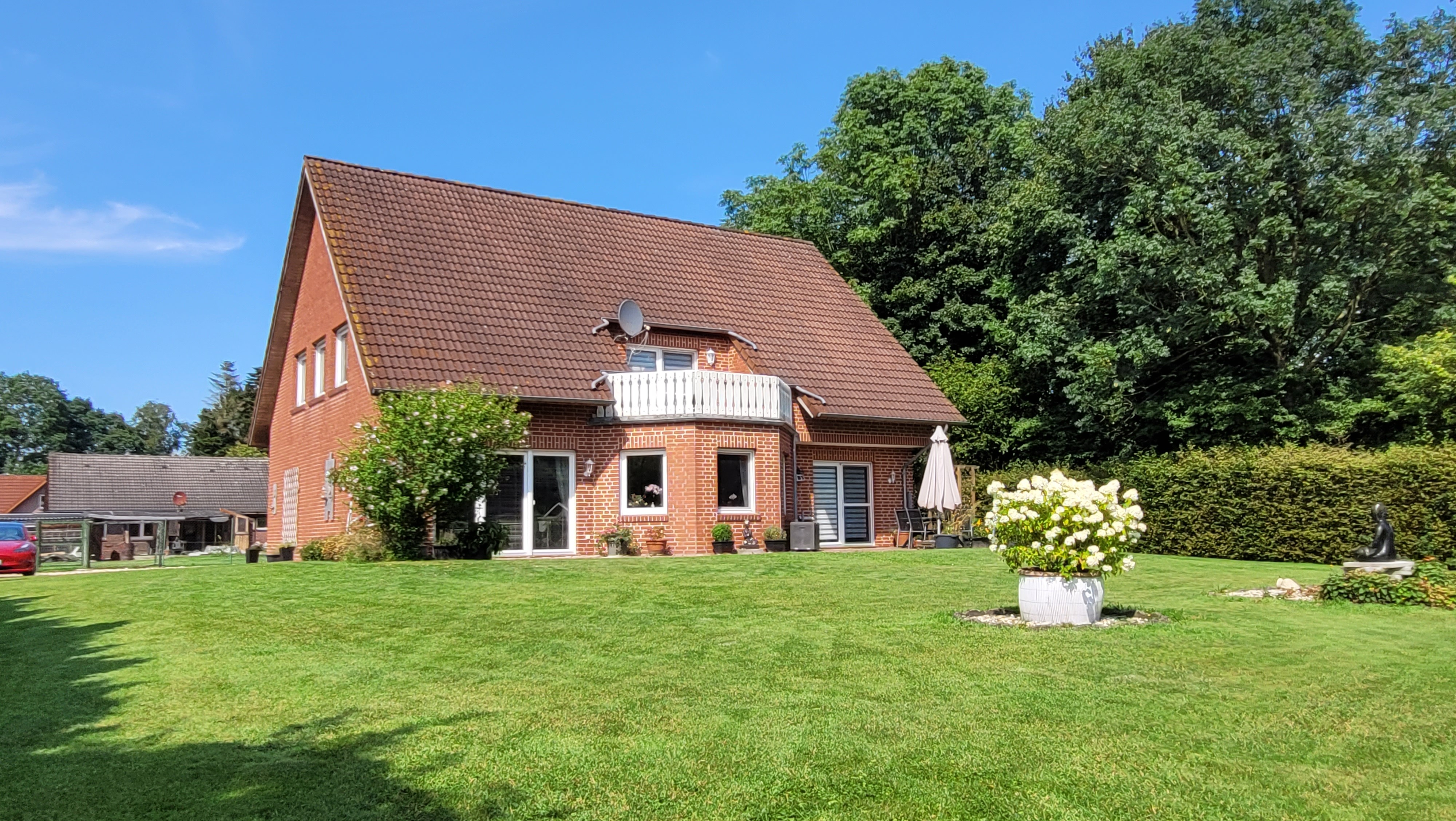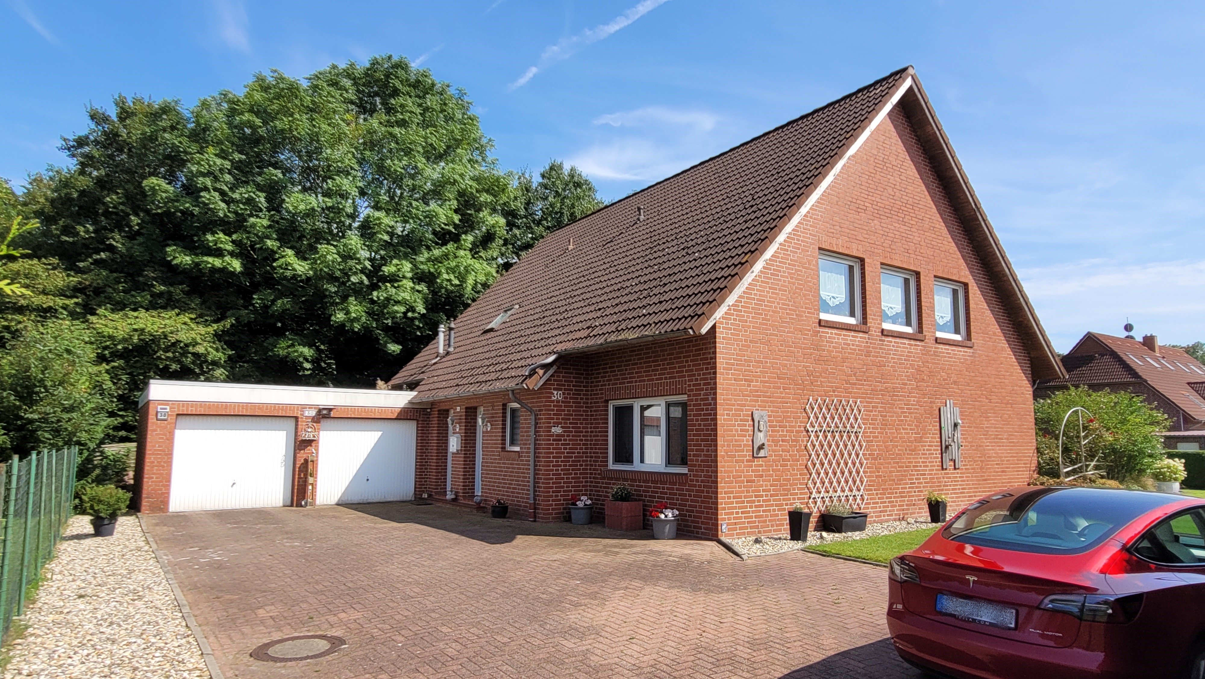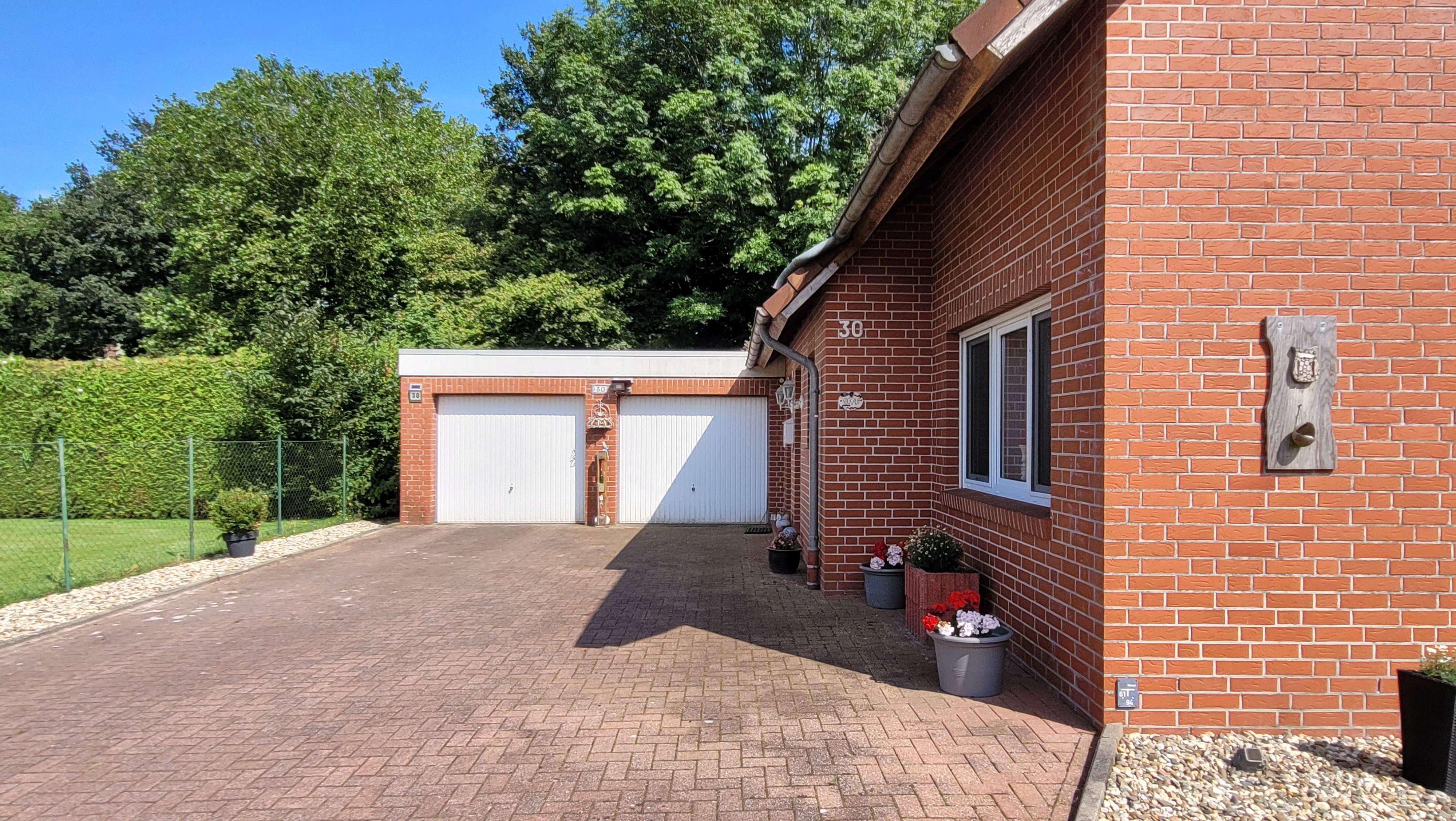 Das Anwesen liegt am Ende einer ruhigen Sackgasse auf einem weitläufigen Grundstück von über 1.180 m². Zwei massiv gemauerte Garagen bieten ausreichend Platz für Fahrzeuge und zusätzlichen Stauraum.