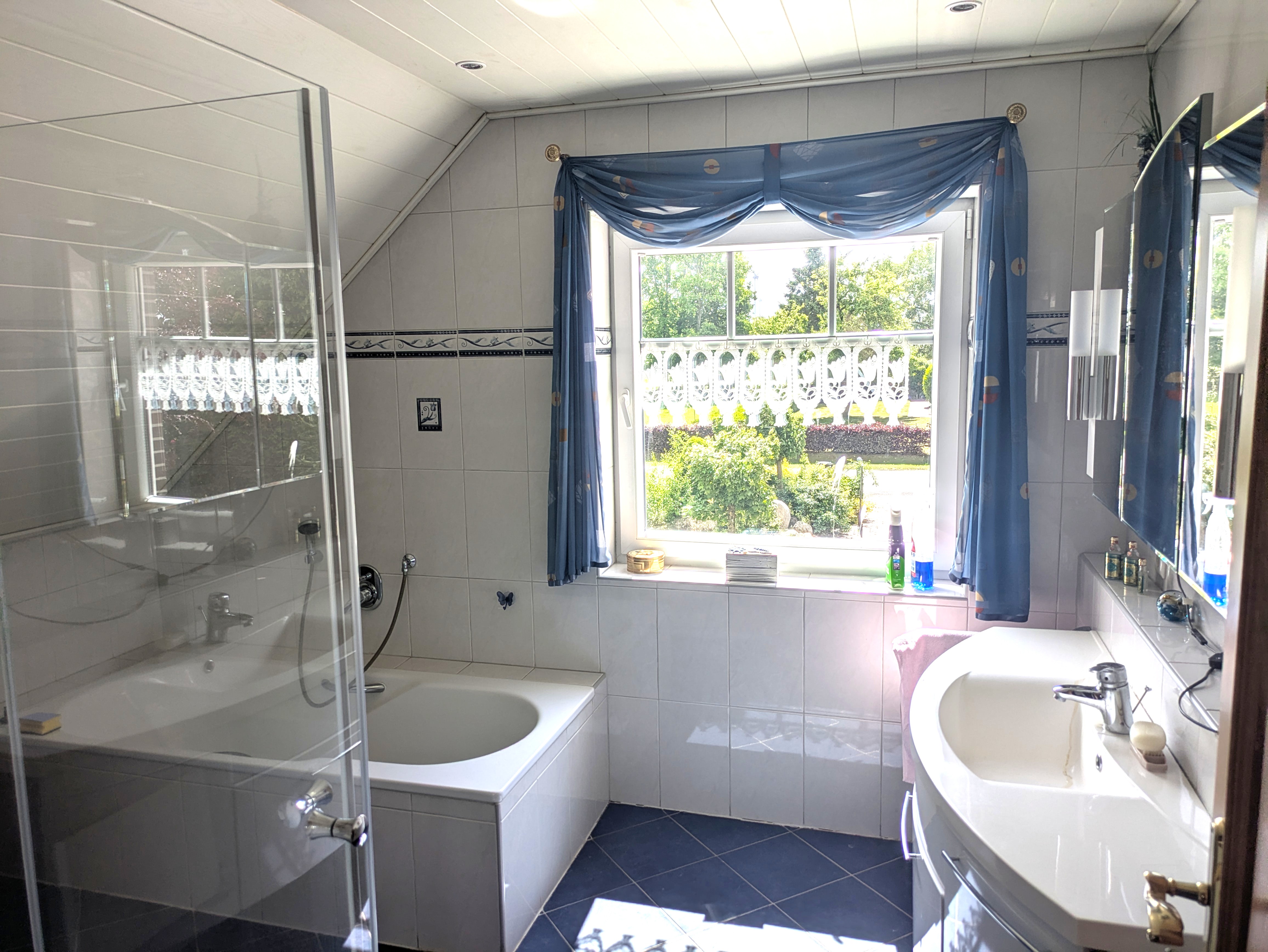 - Ausstattung des Bades Badewanne Dusche Fenster