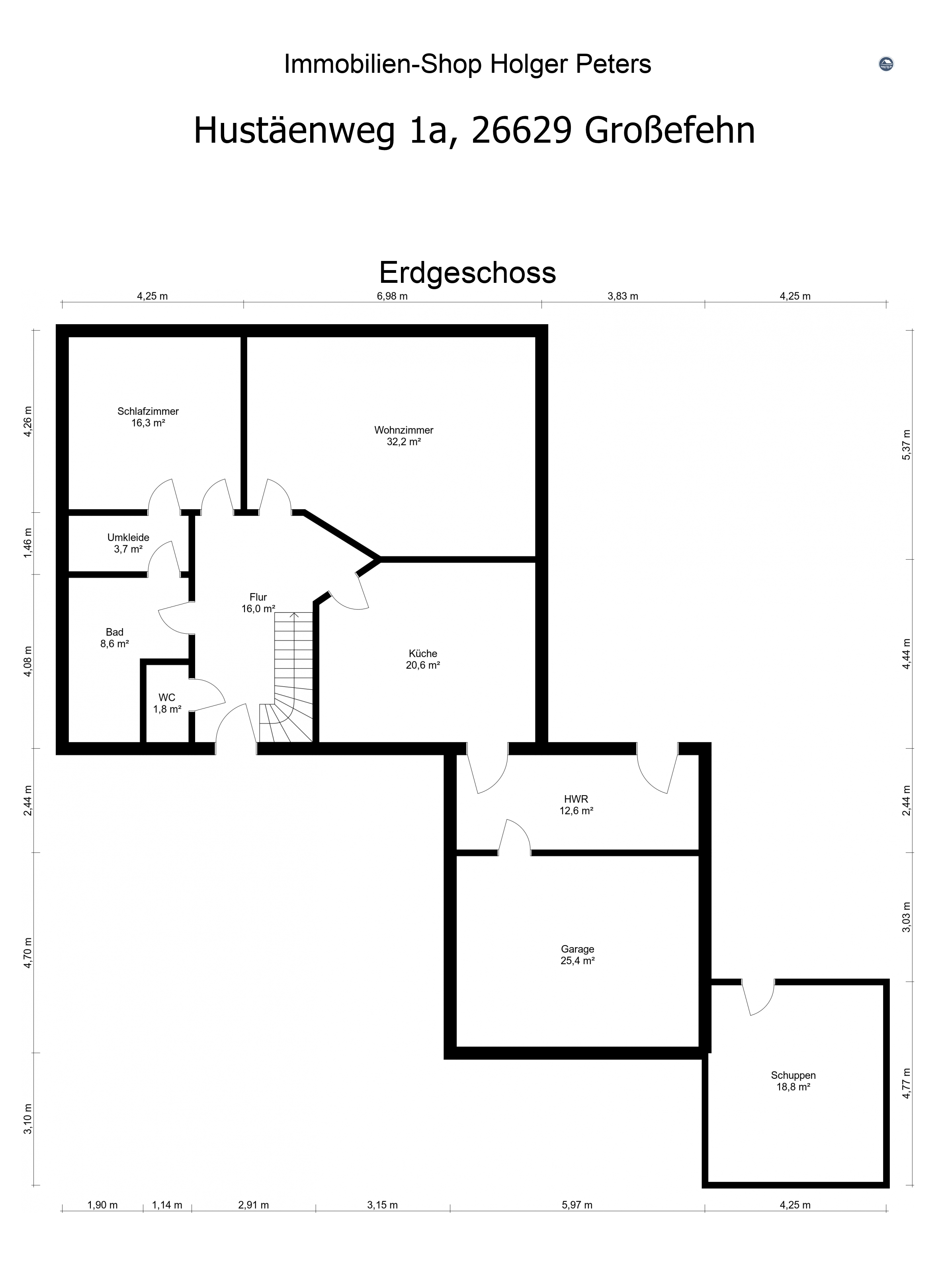Der Käufer zahlt im Erfolgsfall an die Firma Immobilien-Shop Holger Peters eine Käuferprovision in Höhe von 3,45 % inklusive der gesetzlichen MwSt. Die Provision errechnet sich aus dem beurkundeten Kaufpreis.