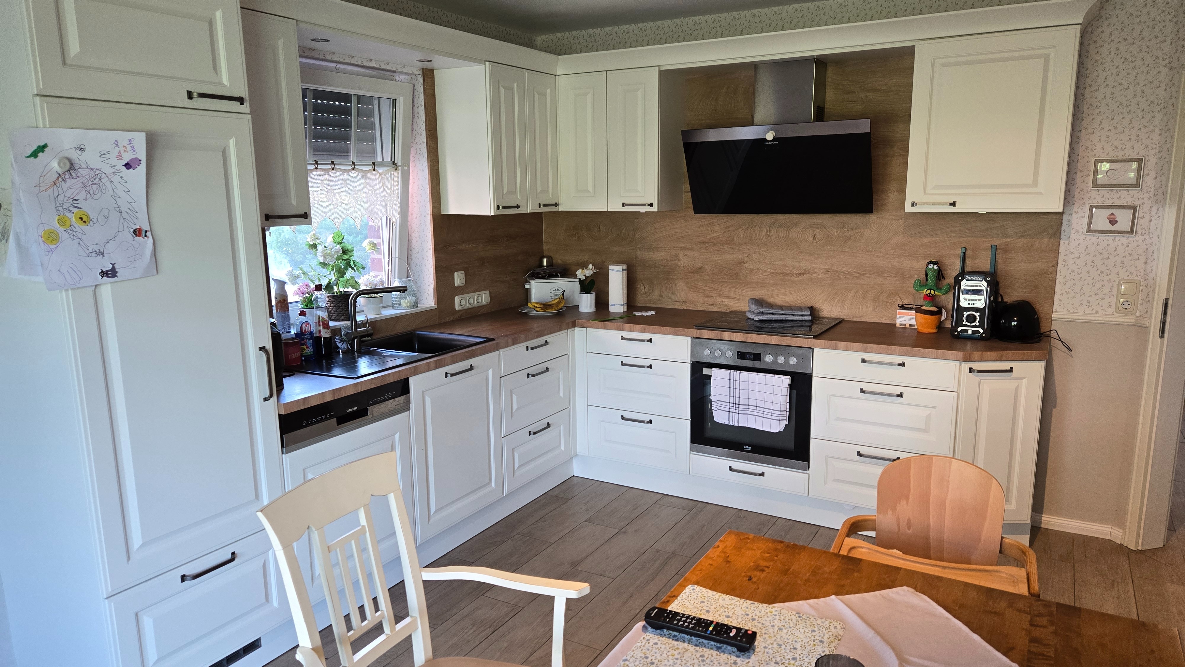 Die moderne Küche lädt zum gemeinsamen Kochen ein und erfüllt auch gehobene Ansprüche. Schlafräume sind sowohl im Erdgeschoss als auch im Obergeschoss vorhanden, sodass sich die Raumaufteilung flexibel an verschiedene Lebenssituationen anpassen lässt.