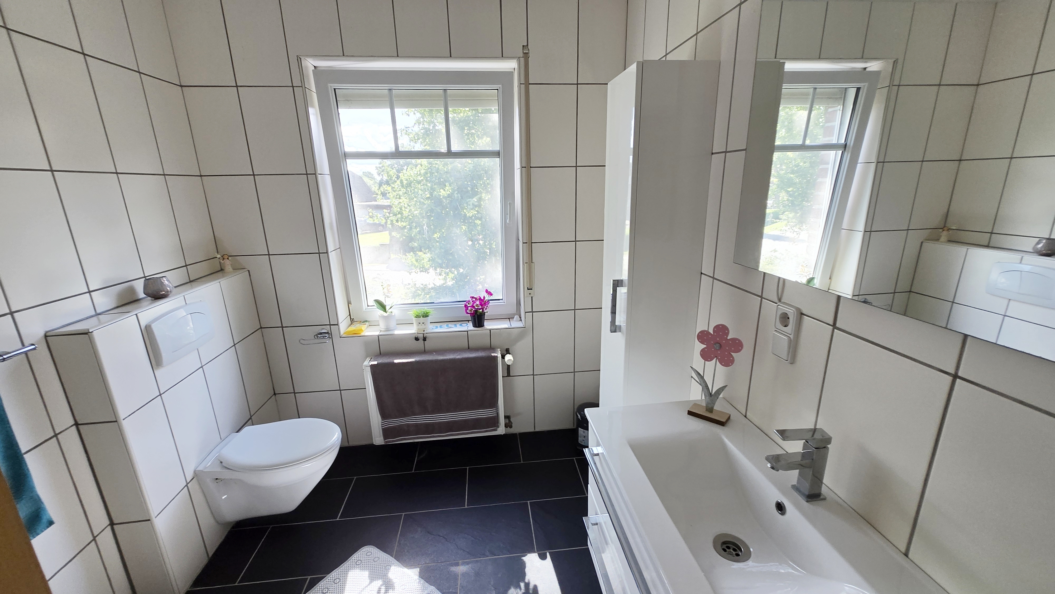- Ausstattung des Bades Badewanne Dusche Fenster
