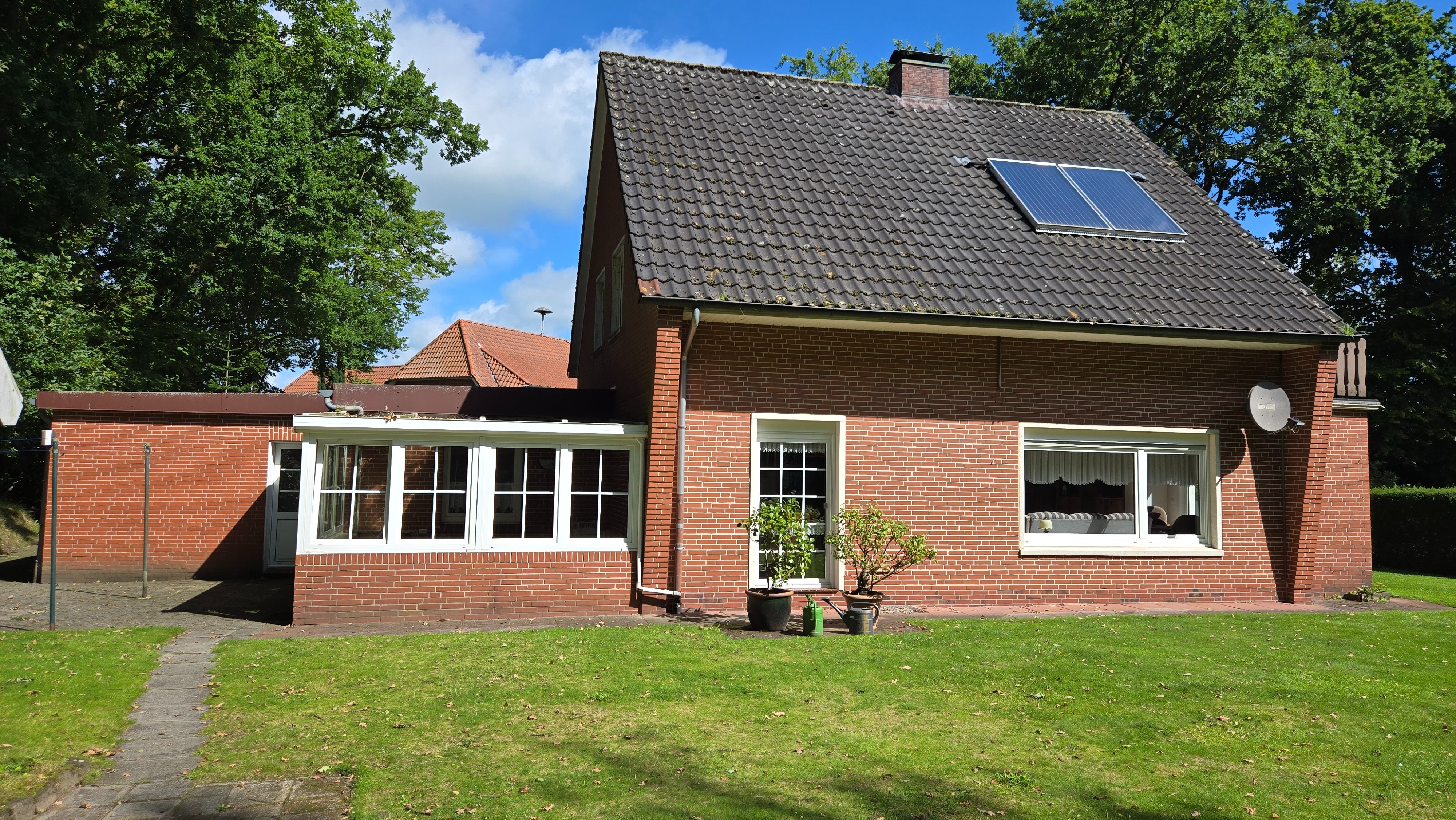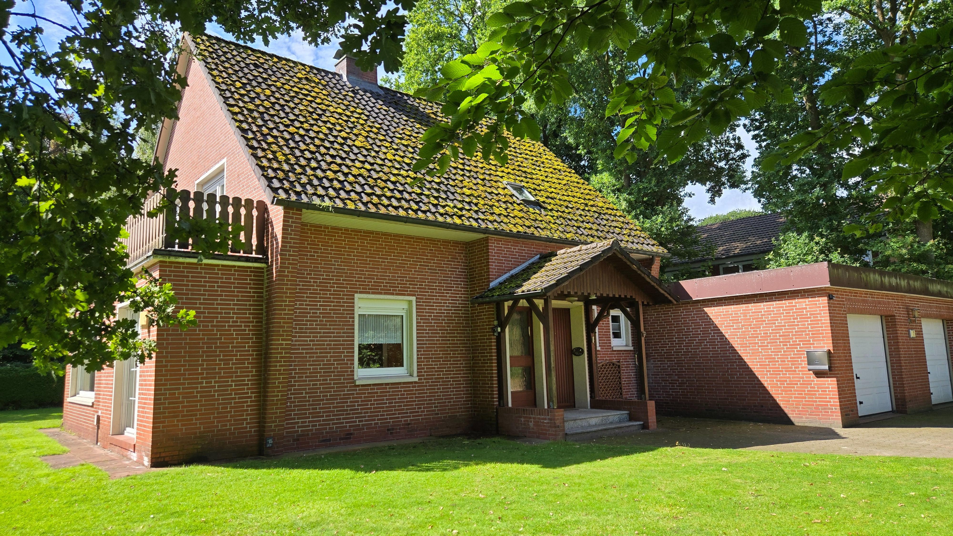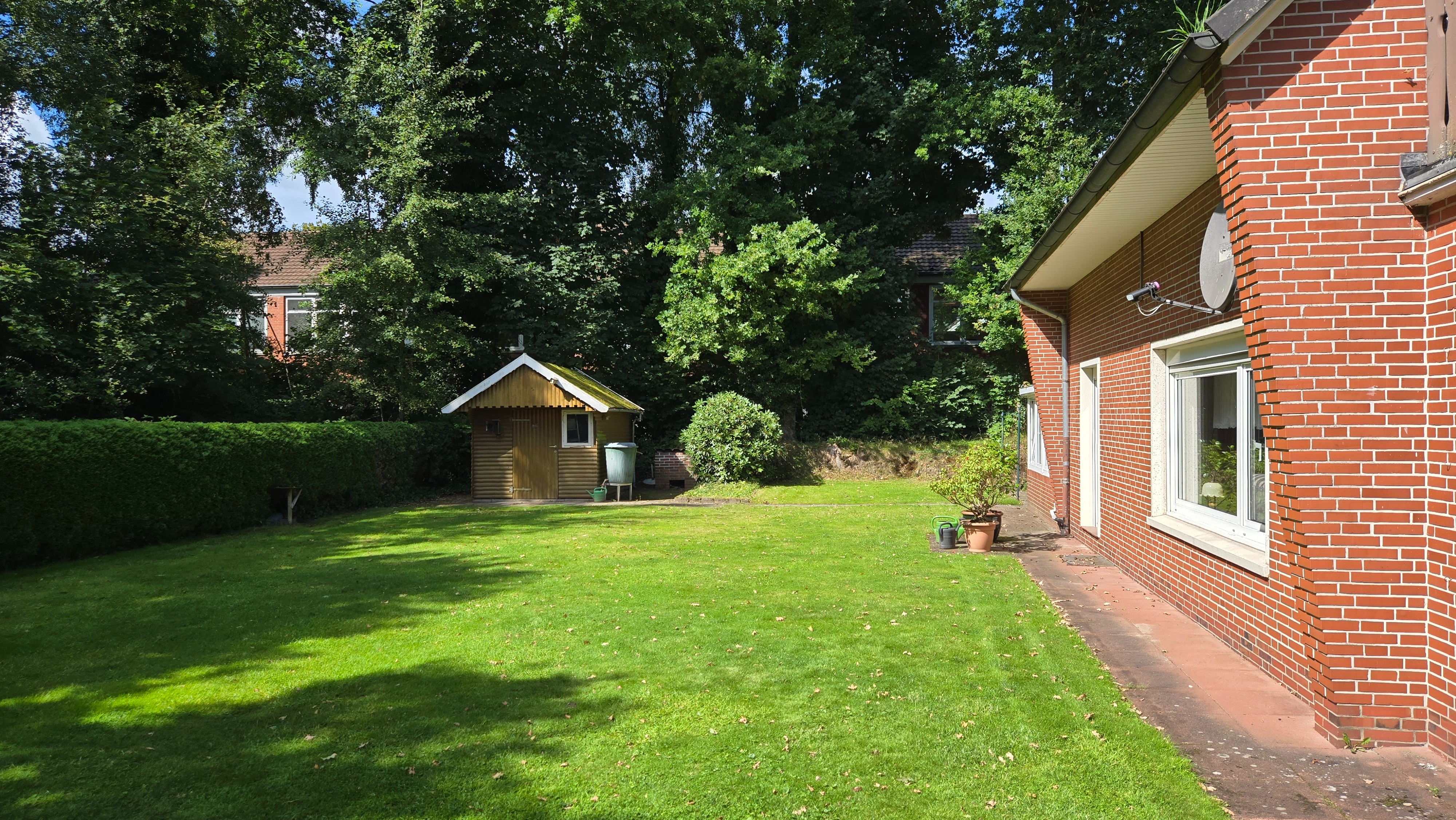 Das Haus ist eingebettet in einen liebevoll angelegten, pflegeleichten Garten mit schönem Baumbestand. Hier genießen Sie Privatsphäre, Ruhe und viel Platz zur Erholung.
