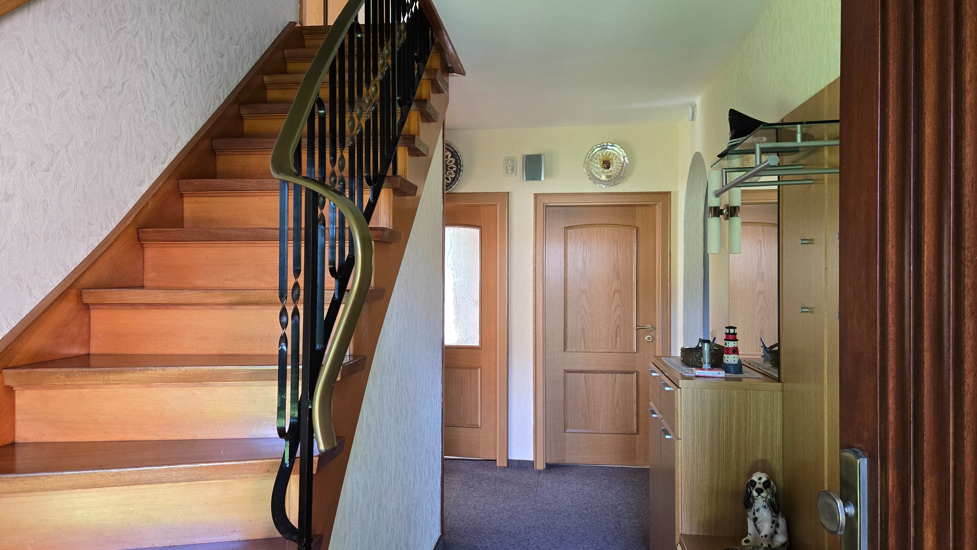 Energetisch wurde das Haus bereits aufgewertet: Die Hohlschicht sowie die Bodendecke sind gedämmt, zusätzlich wurde ein Solarspeicher auf dem Dach installiert – ein Schritt in Richtung zukunftsorientiertes Wohnen.