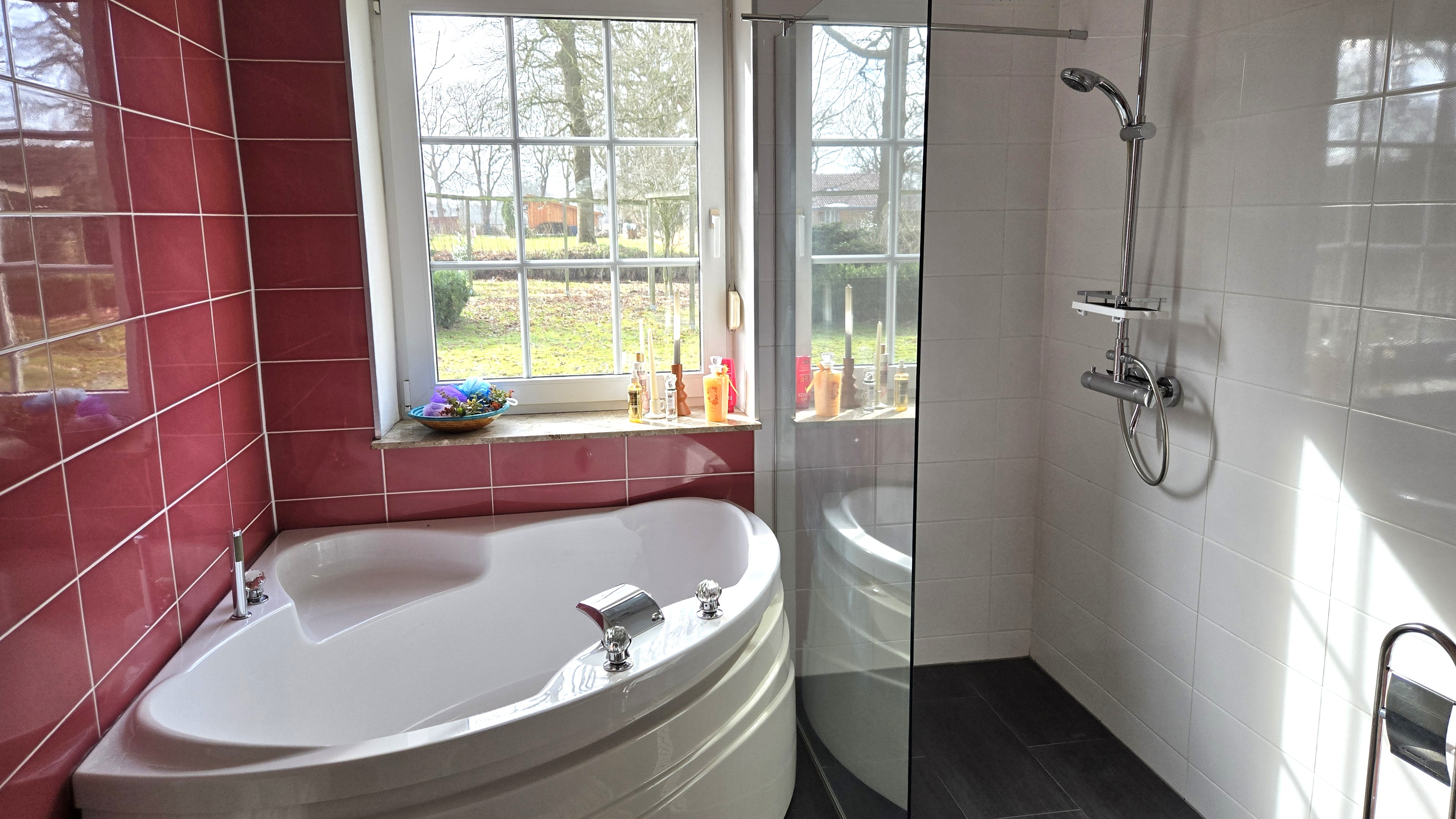- Ausstattung des Bades Badewanne Dusche Fenster